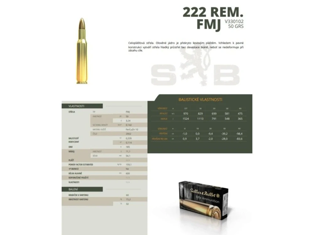 222 Rem. SB FMJ 3,24g (50r) 20 ksSkladem585 Kč/ bl483 Kč bez DPH