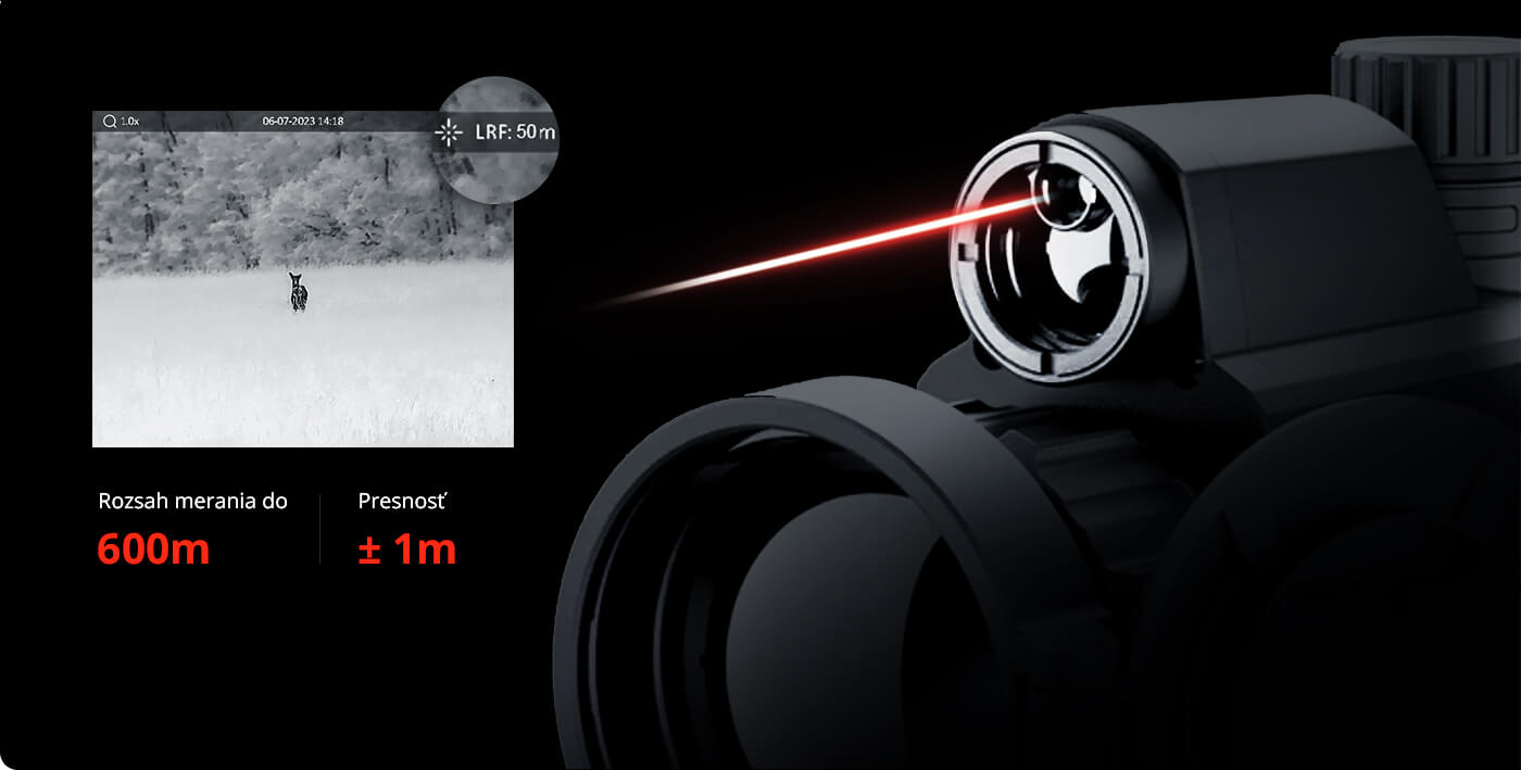 Je vybaven laserovým dálkoměrem s dosahem až 600 metrů.