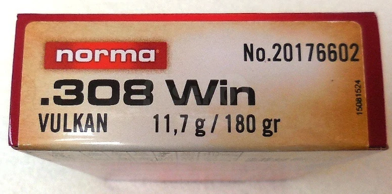 Kulový náboj Norma .308 Vulkan 11,7 g představuje další z originálních konstrukcí střely firmy NORMA, která má rozhodující podíl na její celosvětové slávě a úspěšnosti. Střela NORMA VULKAN je univerzální střelou pro lov zvěře od srnčí až po těžkou vysokou a černou zvěř. Střela NORMA VULKAN se vyznačuje velmi dobrou pevností spojení olověného jádra s tombakovým pláštěm ve spojení s krátkou expanzivní dutinkou na hrotu. NORMA VULKAN proto vyniká velmi rychlou deformací i v méně tuhých tkáních a s tím spojenou vysokou ranivostí bez nadměrné fragmentace nebo výraznějšího omezení průniku do hloubky. Střelivo laborované střelami NORMA VULKAN o různé váze proto nabízí jistotu odpovědného zásahu, a to i při hůře umístěné ráně, a svým všestranným použitím nezklame při žádné příležitosti výkonu práva myslivosti.